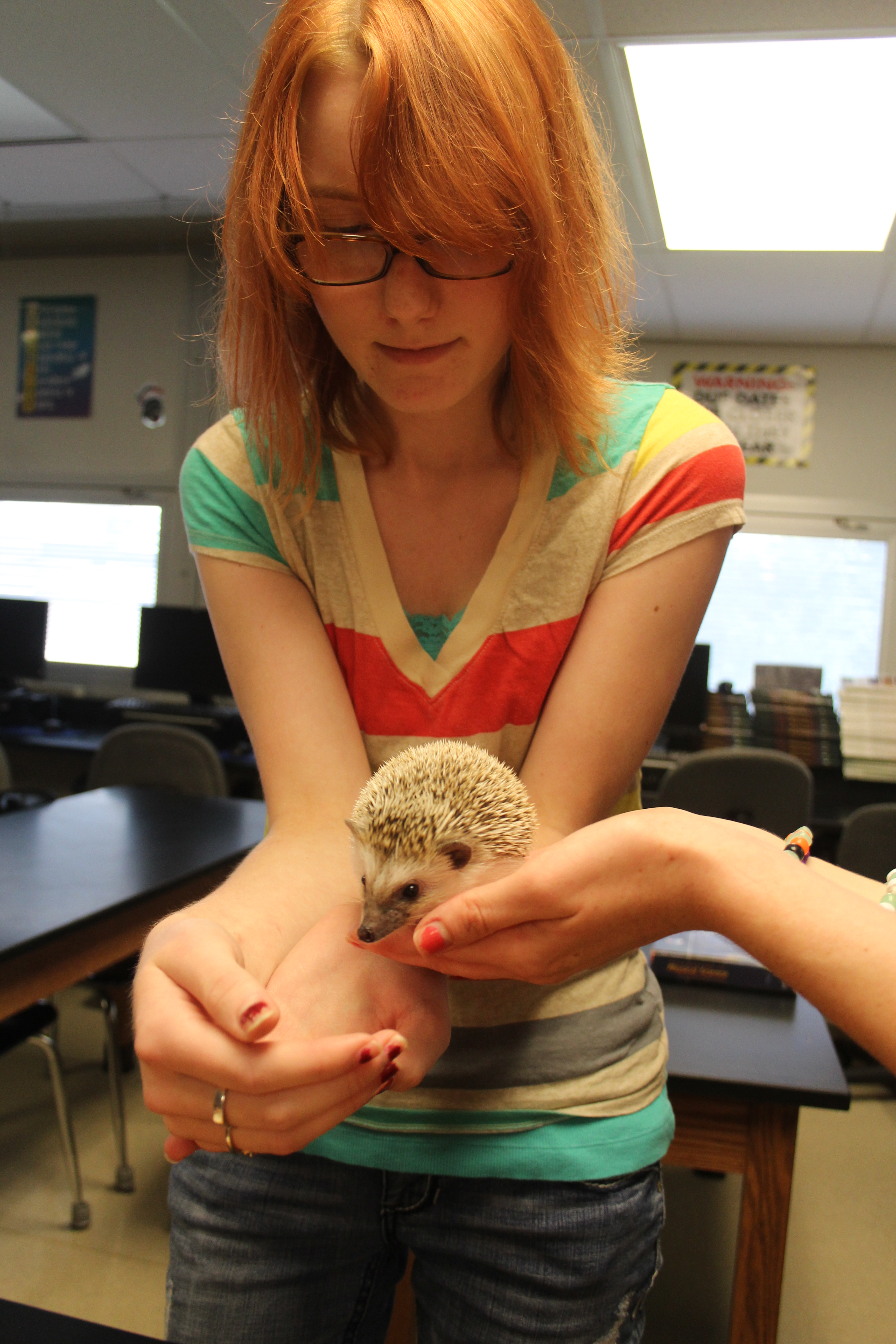 The two-month old hedgehogs, named Sugar and Spice, now reside in zoology teacher Jennifer Wadas’s classroom. Mrs. Wadas wanted the hedgehogs to use as an educational tool in her classroom, and she had to do a lot of work to get them.